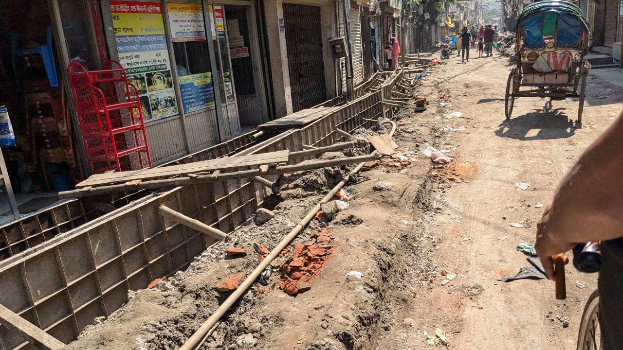 পোস্তগোলা থেকে সূত্রাপুর পর্যন্ত প্রায় দুই কিলোমিটার রাস্তার বেহাল অবস্থা চরম ভোগান্তিতে ফেলেছে এলাকাবাসীকে। ২০২৪ সালের পুরোনো ভাঙাচোরা এই সড়কে কোথাও বড় গর্ত, কোথাও ভাঙা ড্রেনের মুখ—এমন বিপজ্জনক অবস্থায় প্রতিদিনই ঘটছে অসংখ্য দুর্ঘটনা।