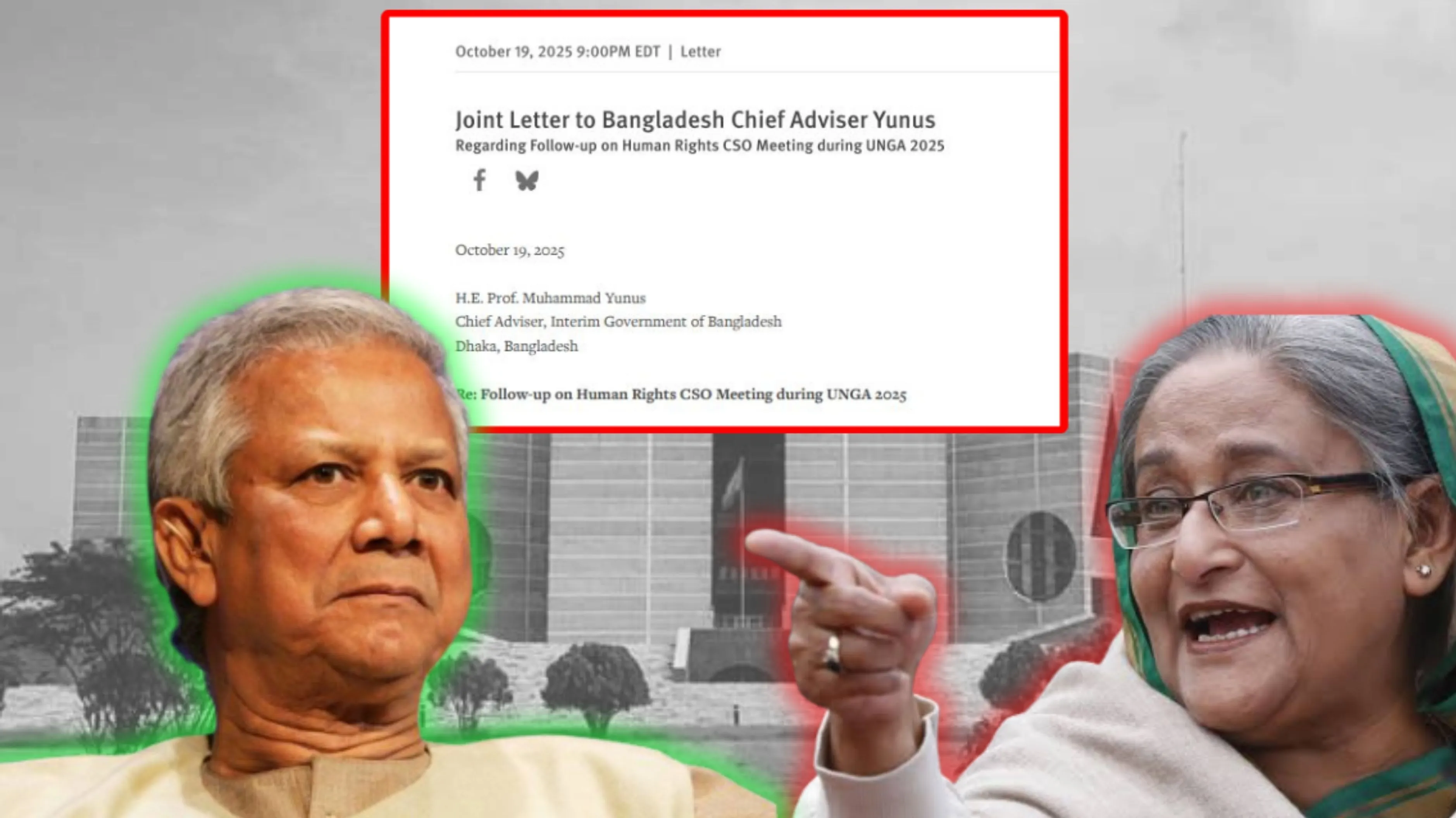 গত রবিবার অন্তর্বর্তী সরকারের প্রধান উপদেষ্টা ড. মুহাম্মদ ইউনূসের উদ্দেশে লেখা এক খোলা চিঠিতে সংস্থাগুলো এই আহবান জানায়। চিঠিটি প্রকাশ করেছে হিউম্যান রাইটস ওয়াচের ওয়েবসাইট।