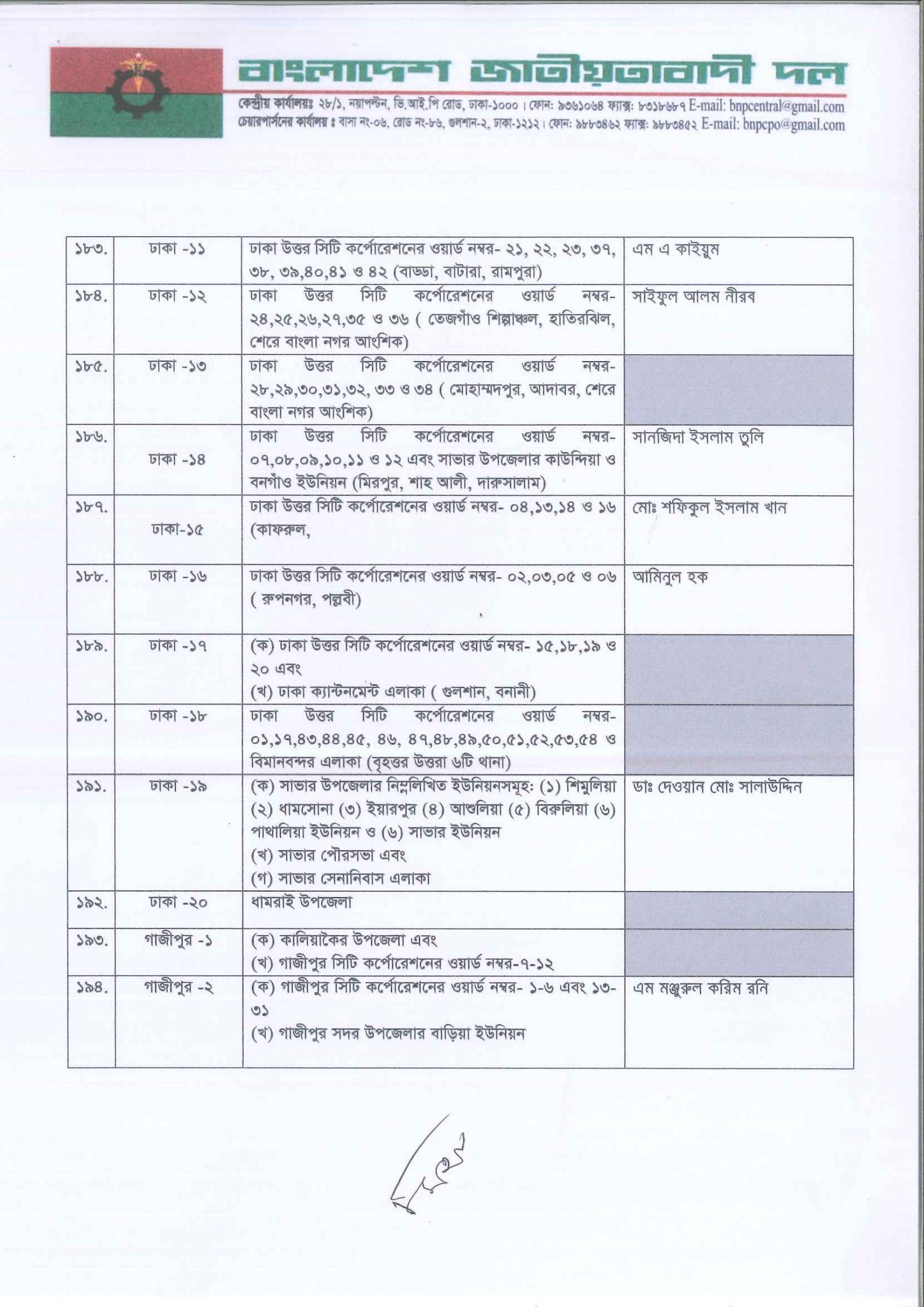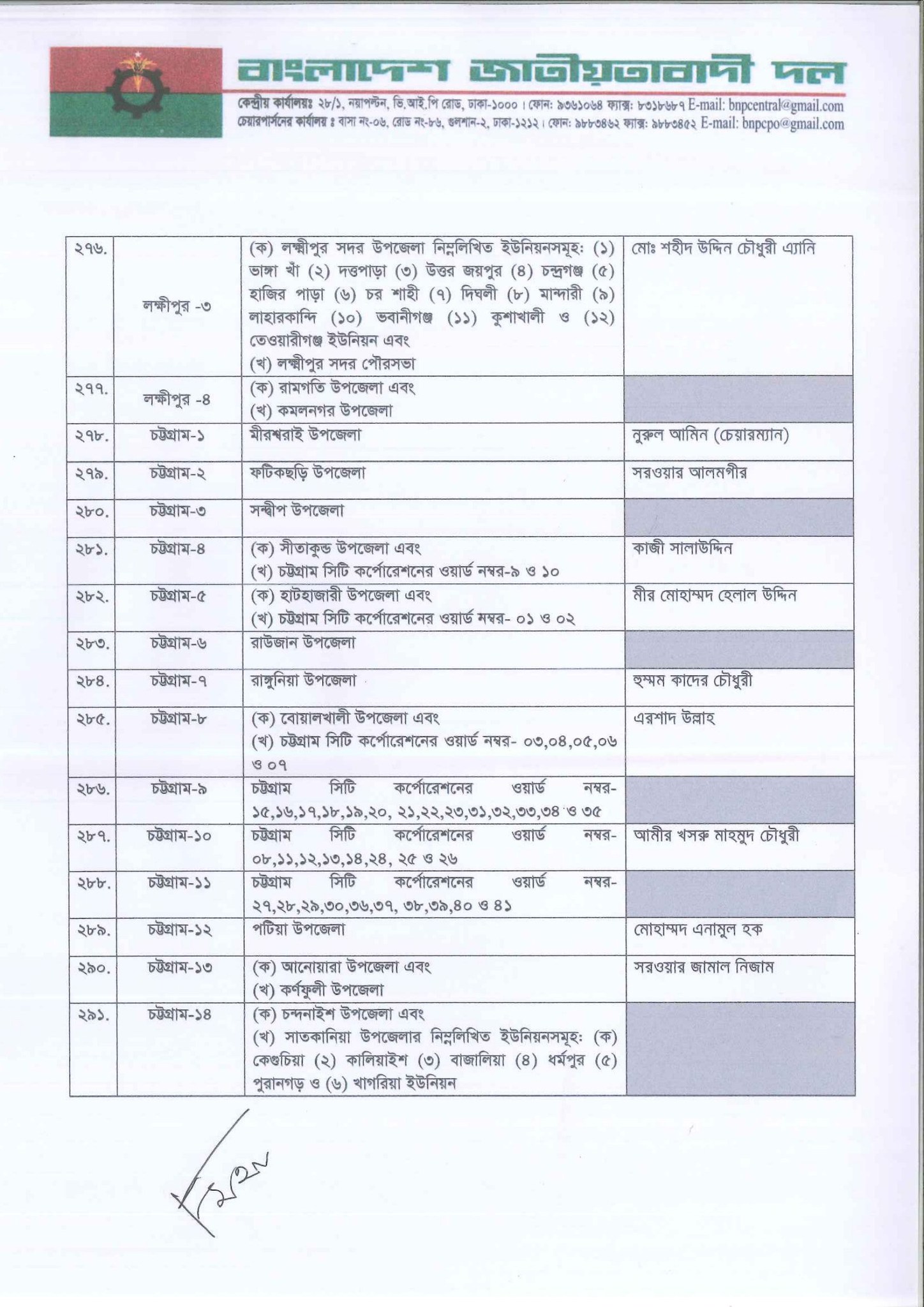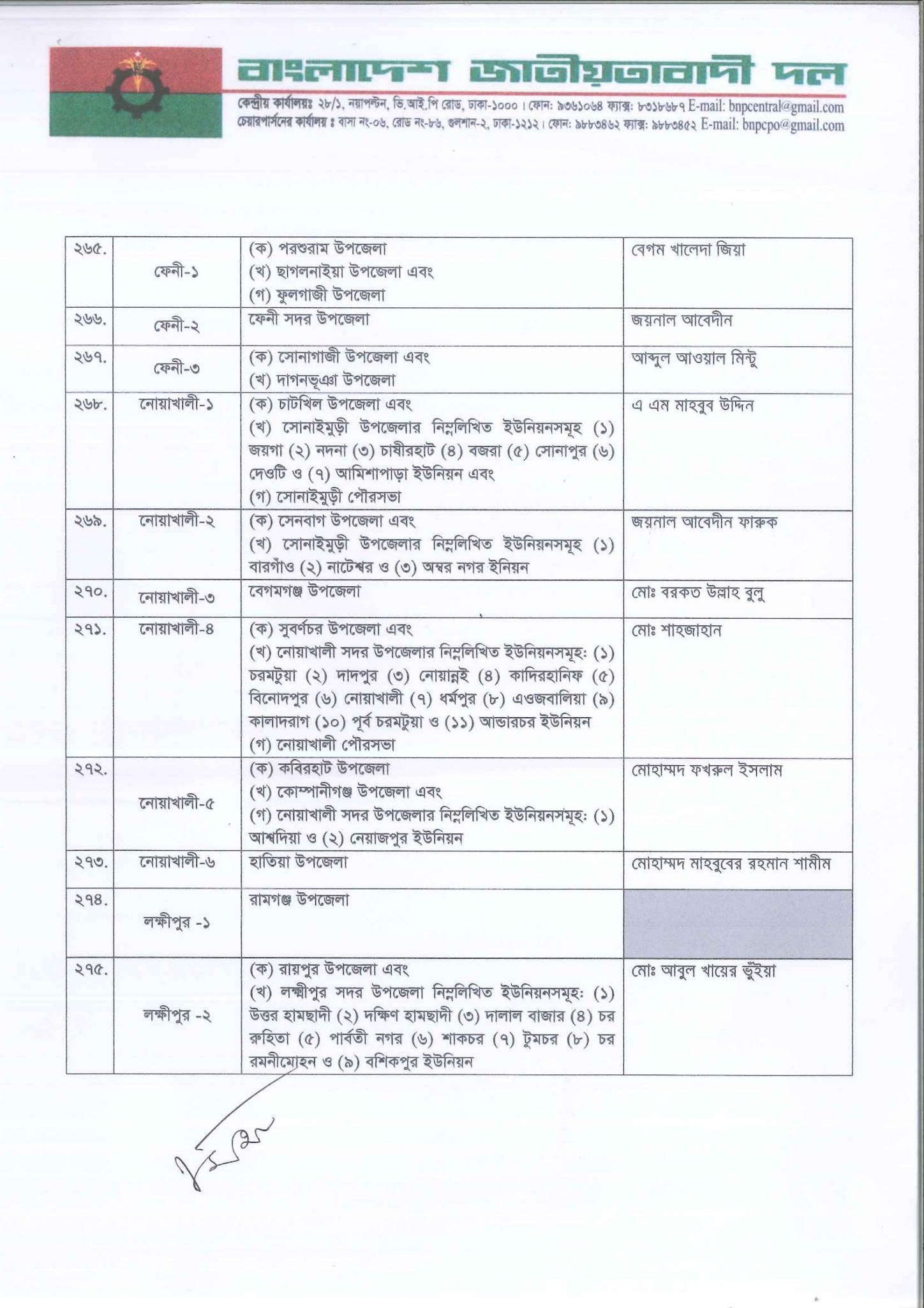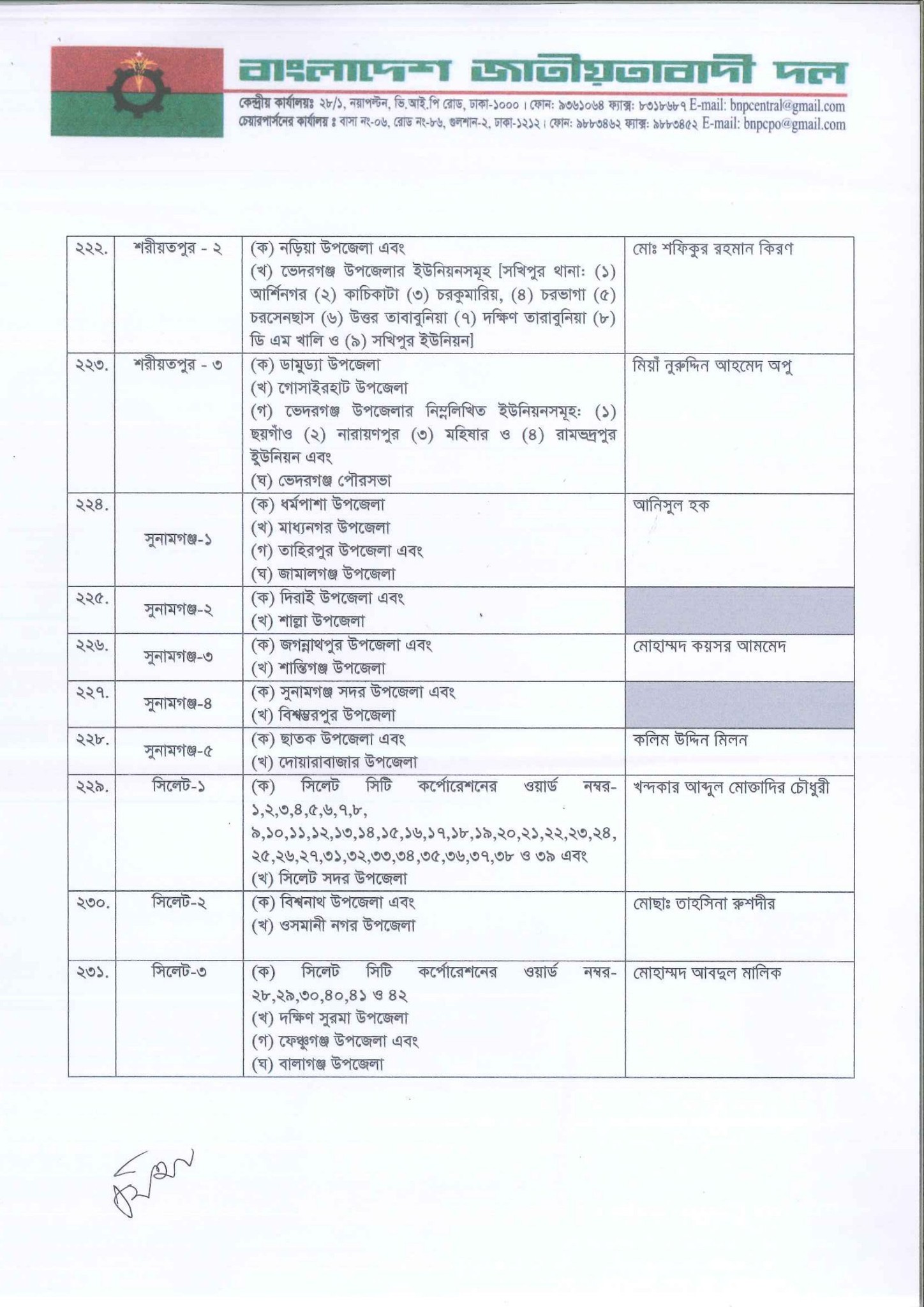 বিএনপির প্রার্থীদের পূর্ণ তালিকা নিচে প্রকাশ করা হলো -