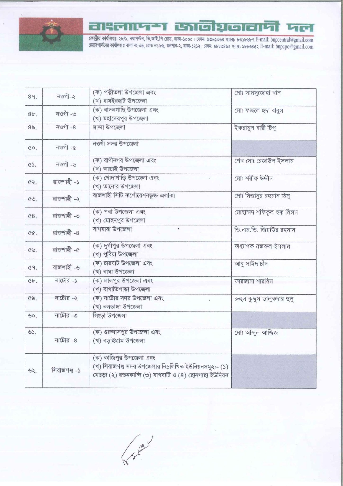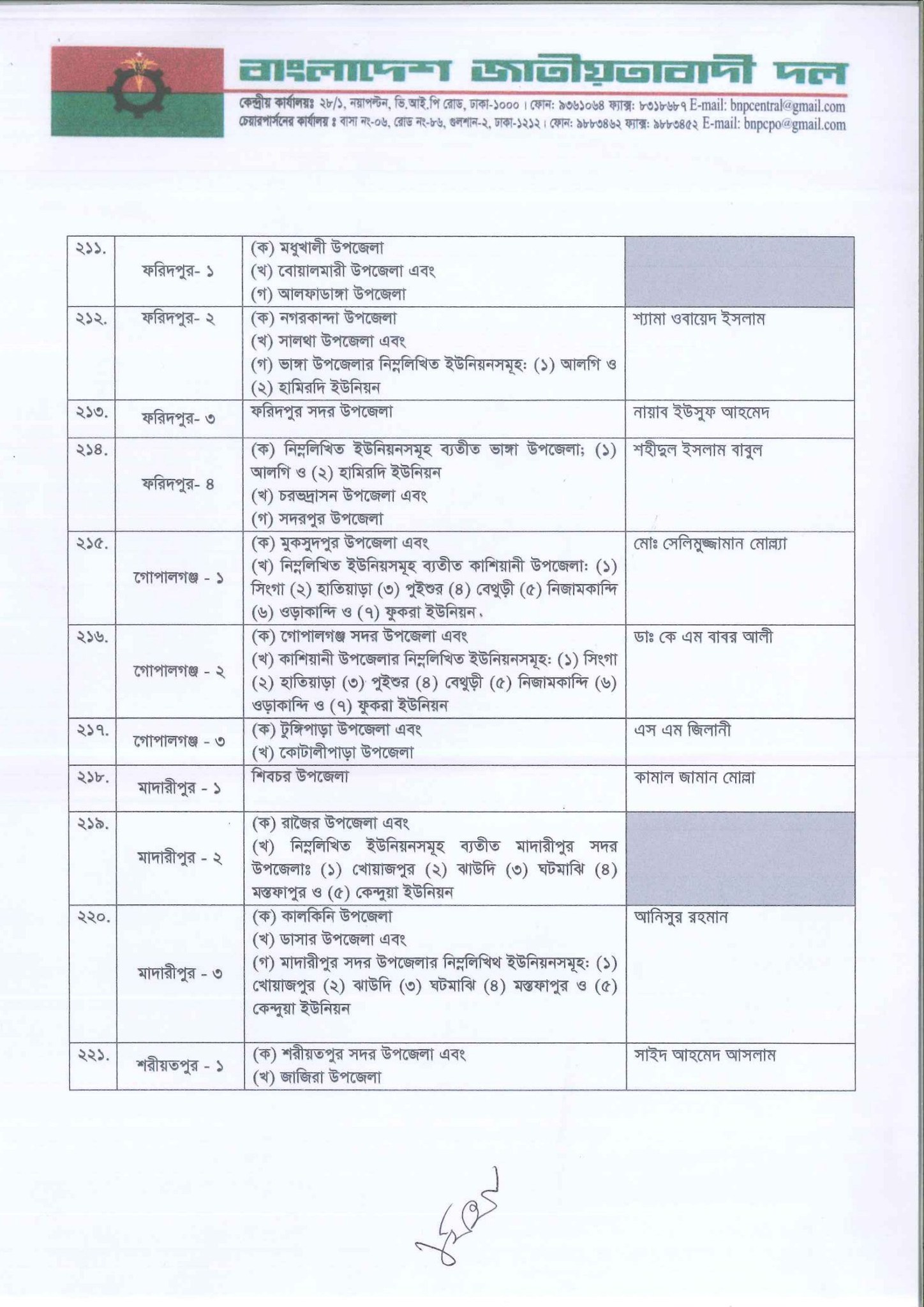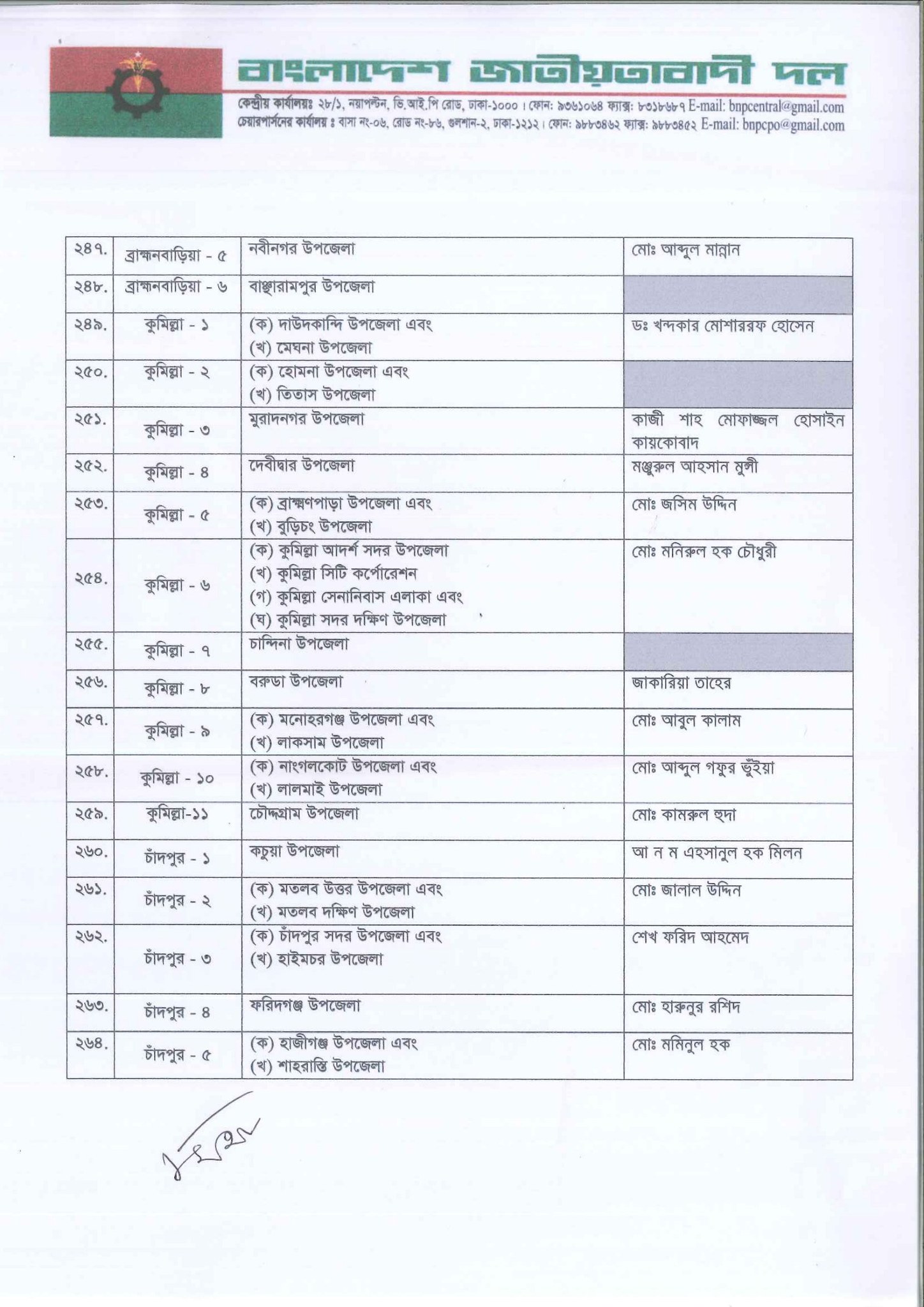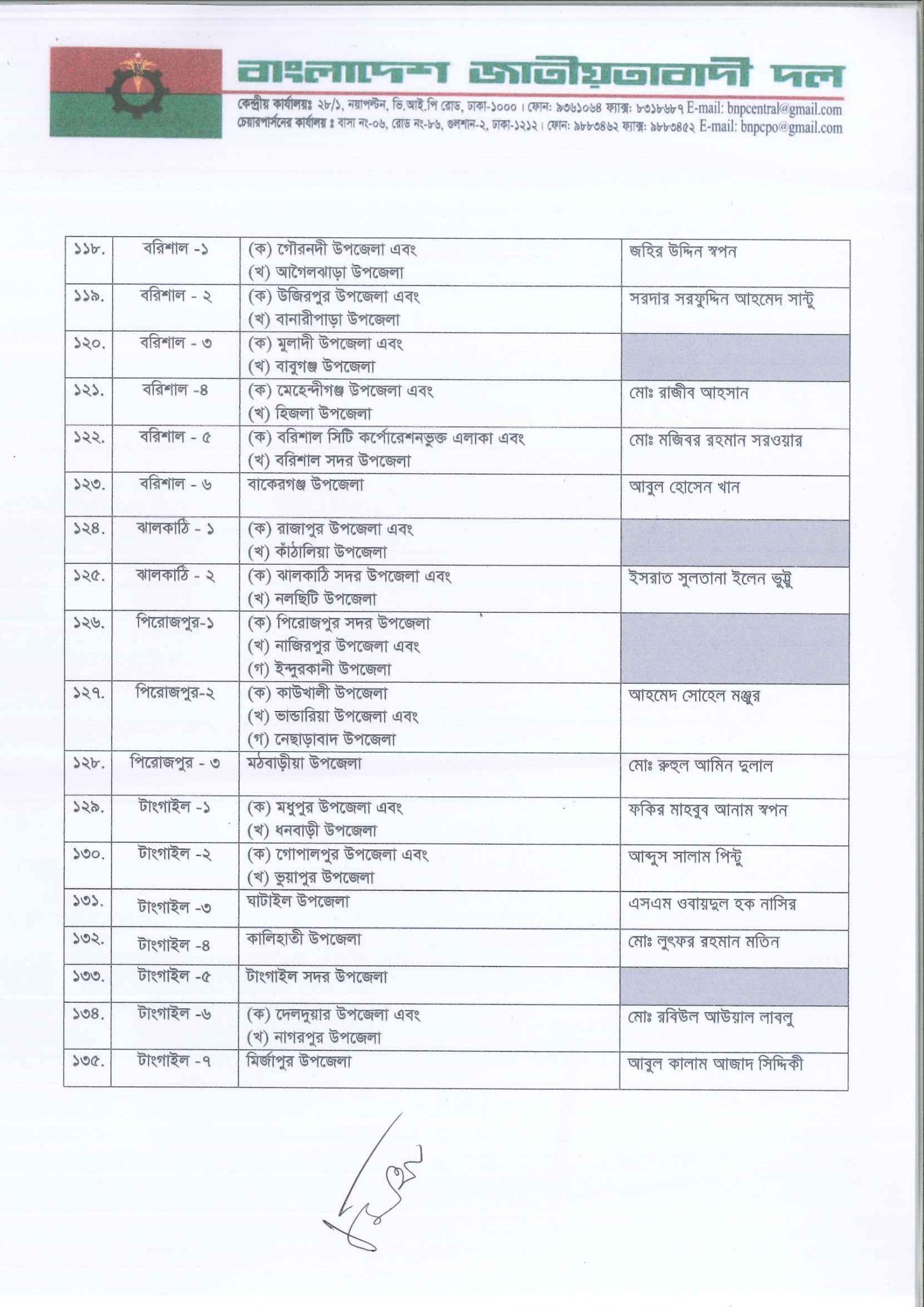 বিএনপির প্রার্থীদের পূর্ণ তালিকা নিচে প্রকাশ করা হলো -