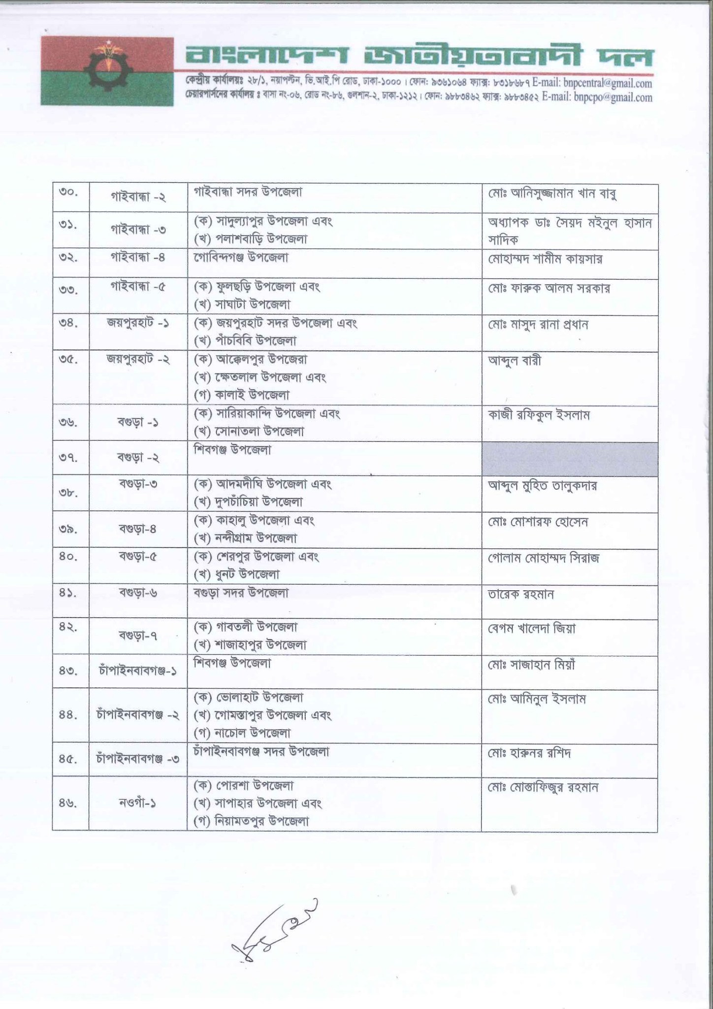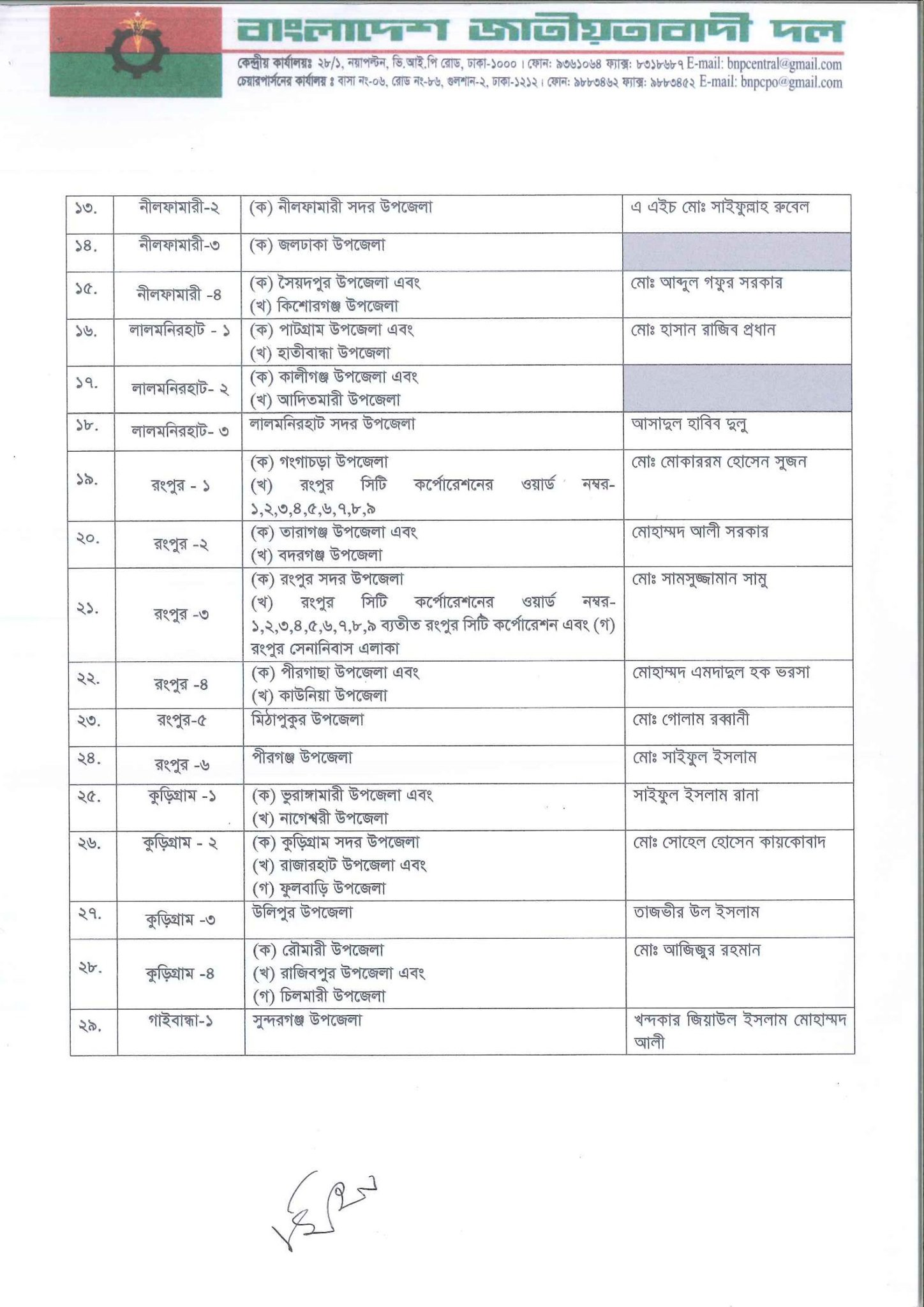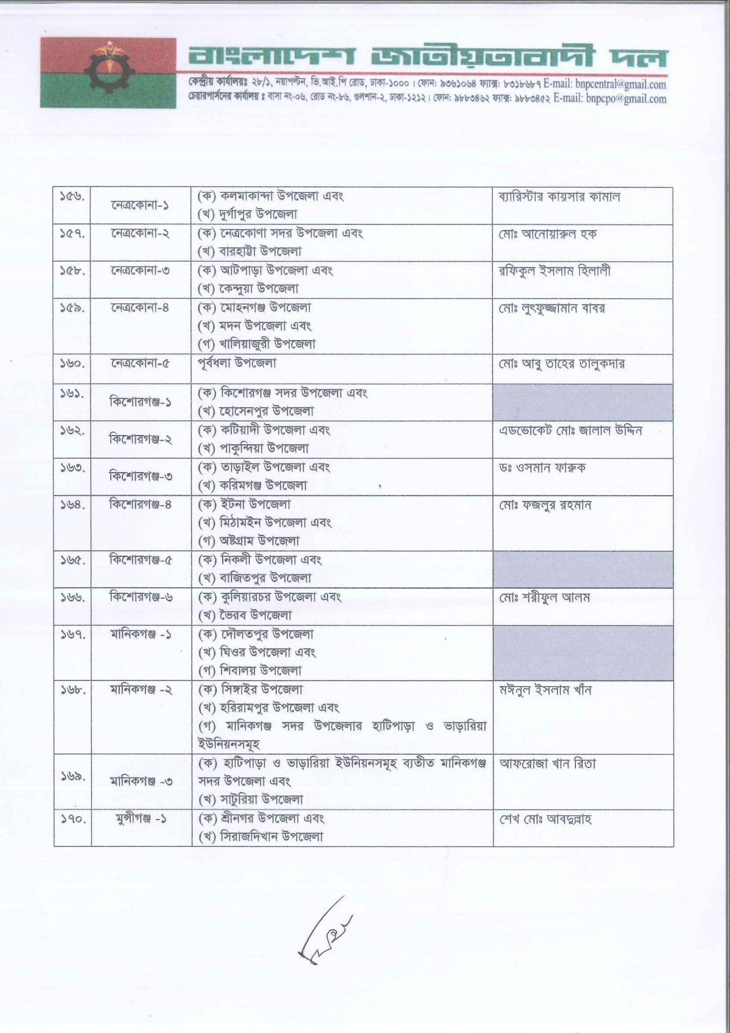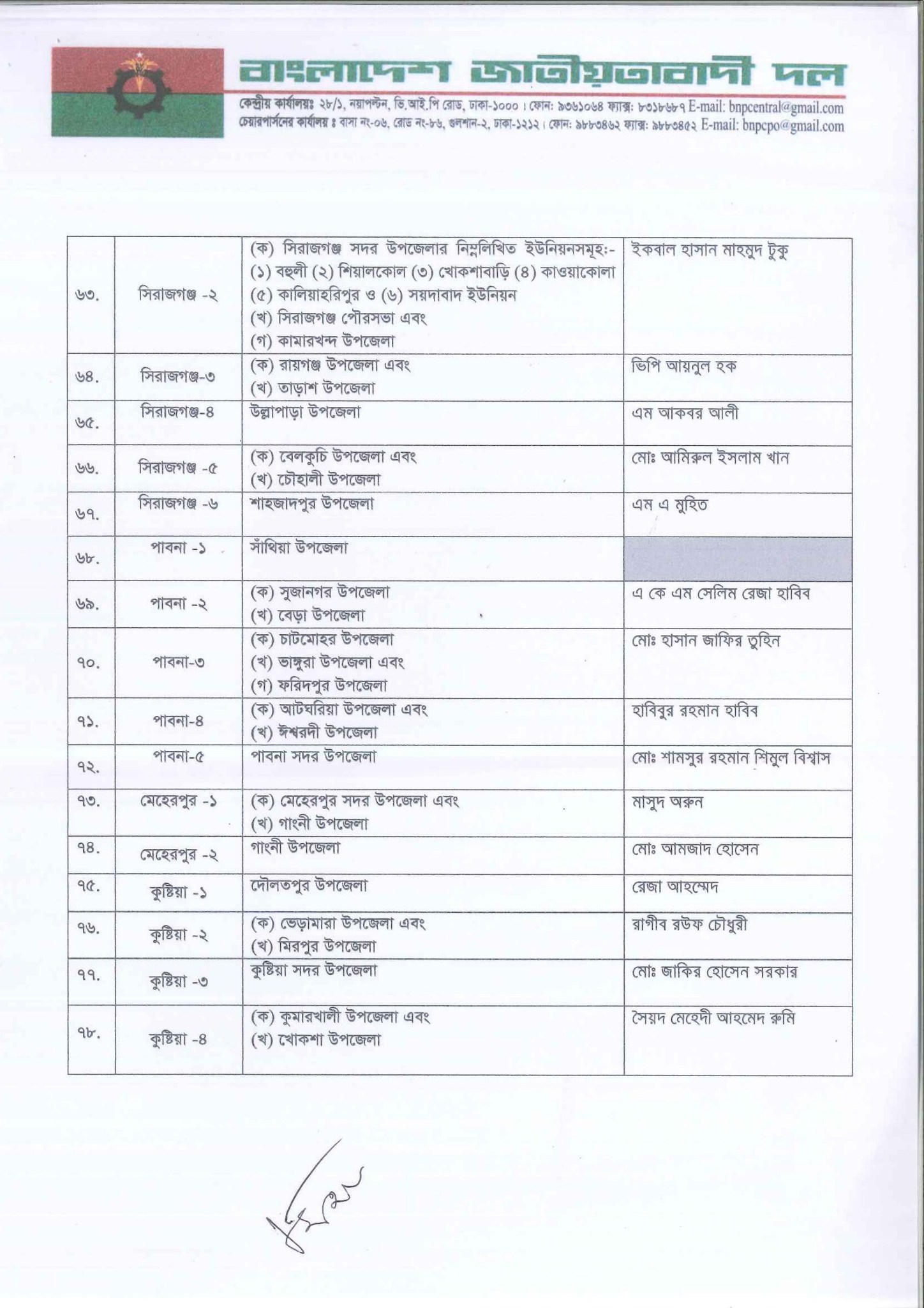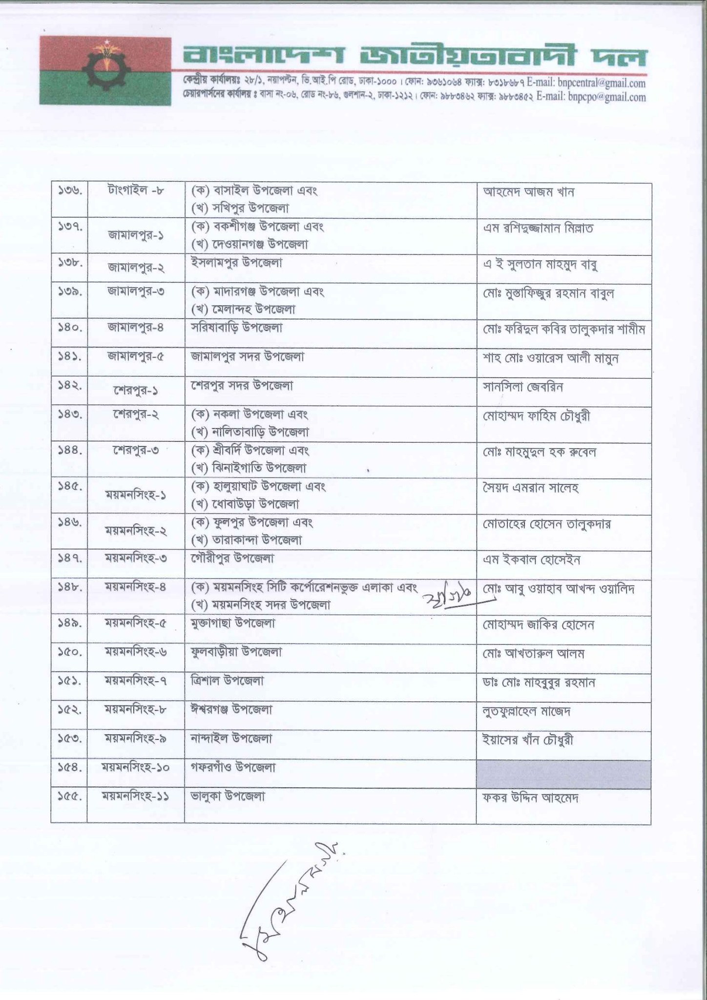 বিএনপির প্রার্থীদের পূর্ণ তালিকা নিচে প্রকাশ করা হলো -