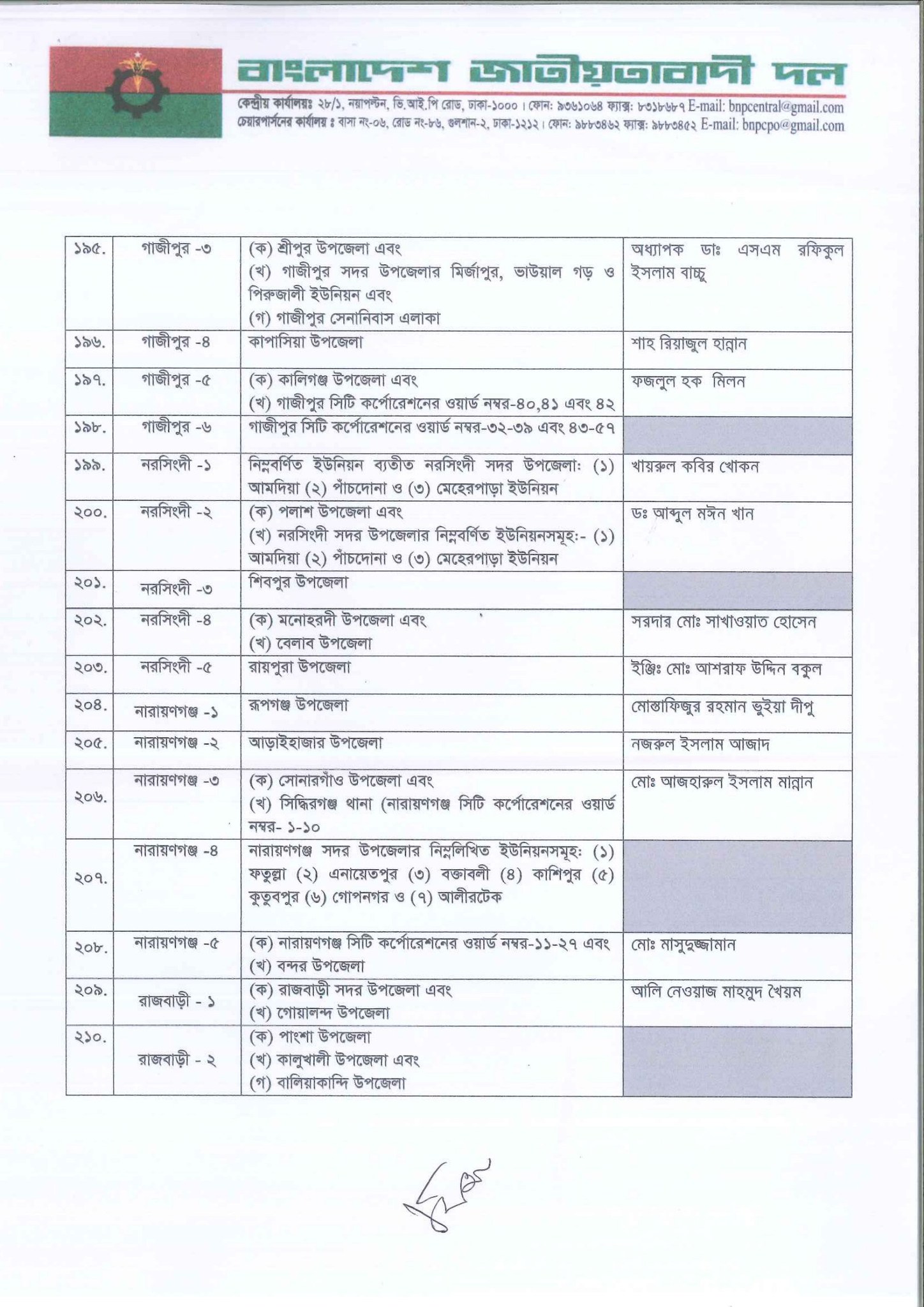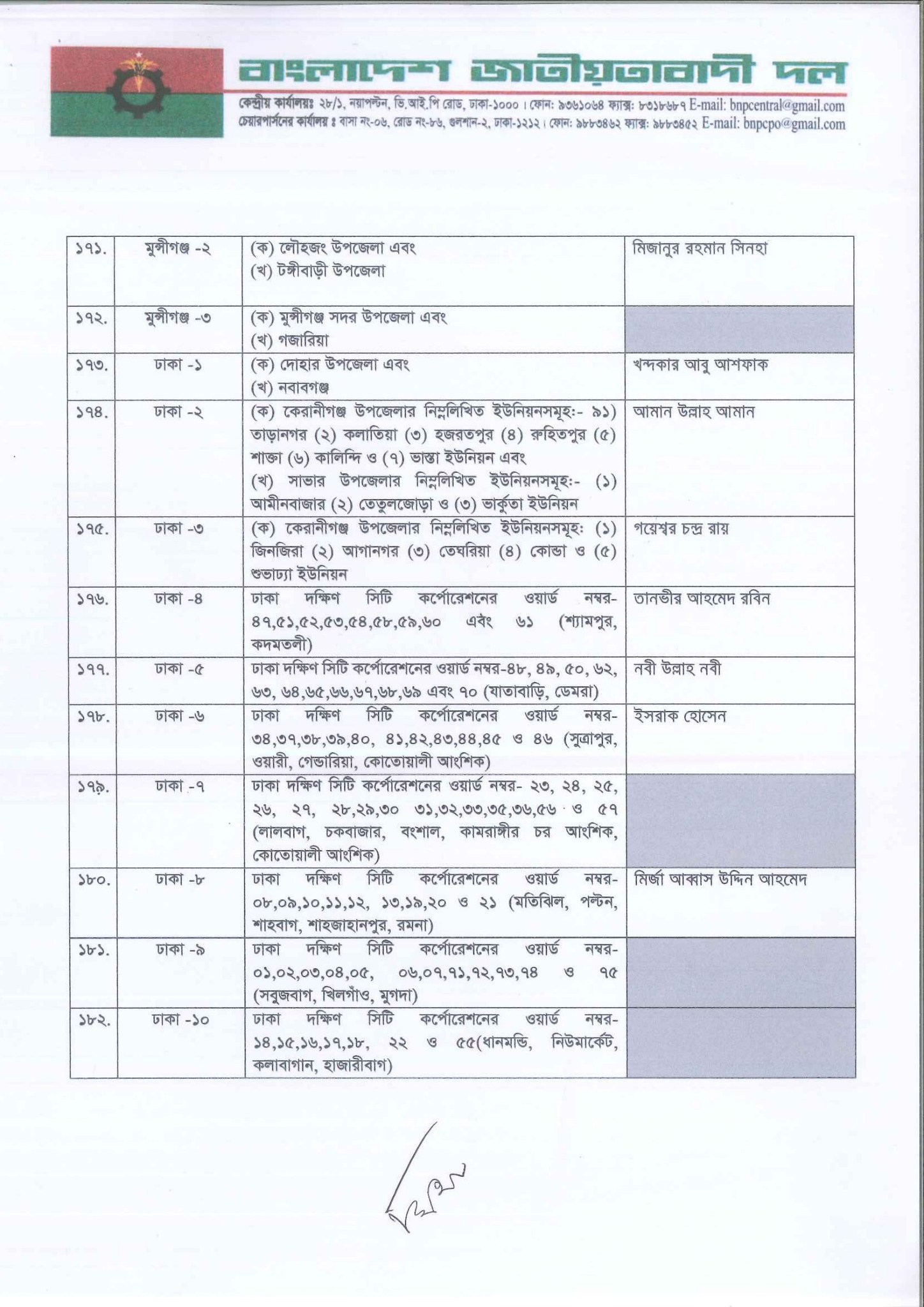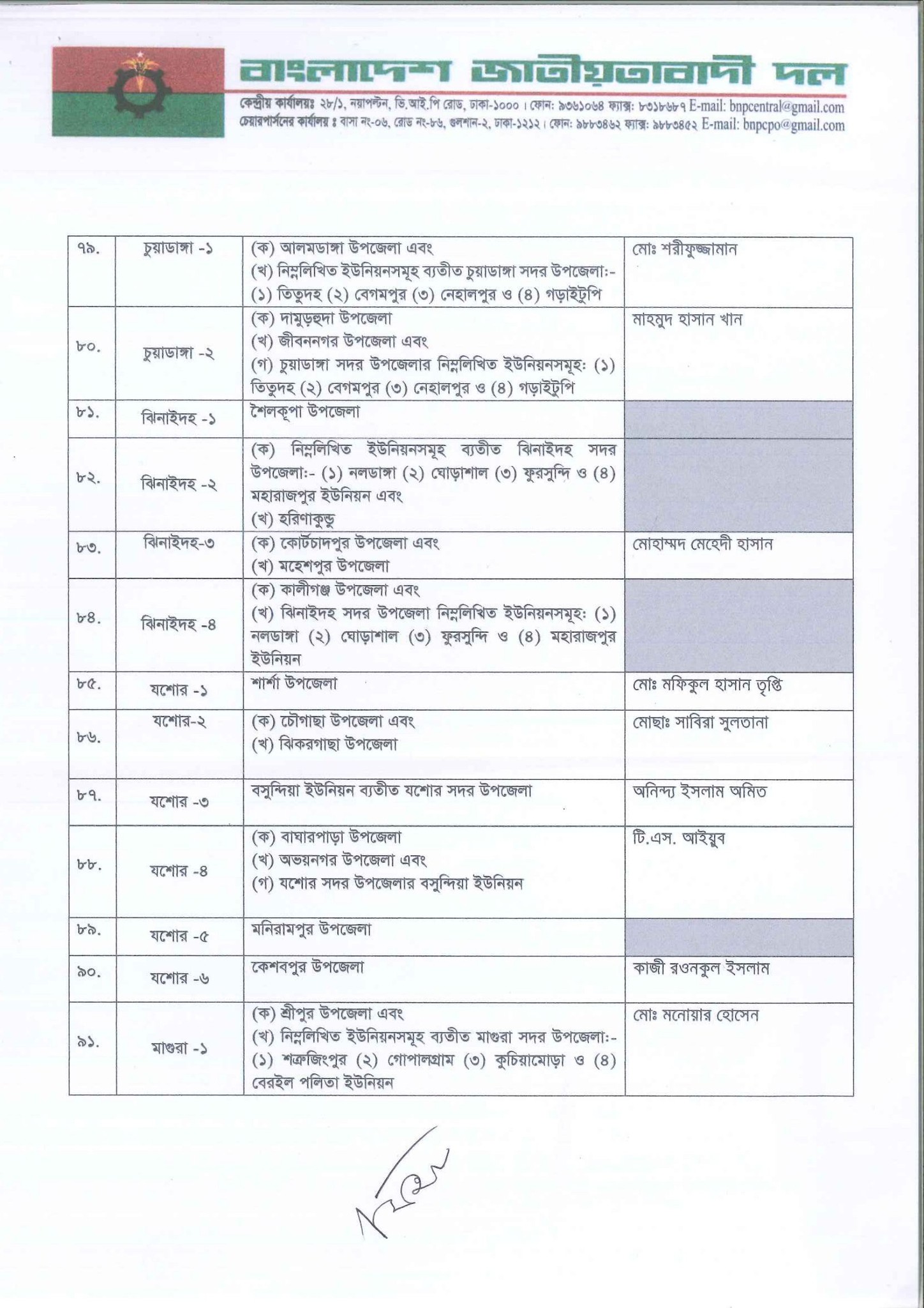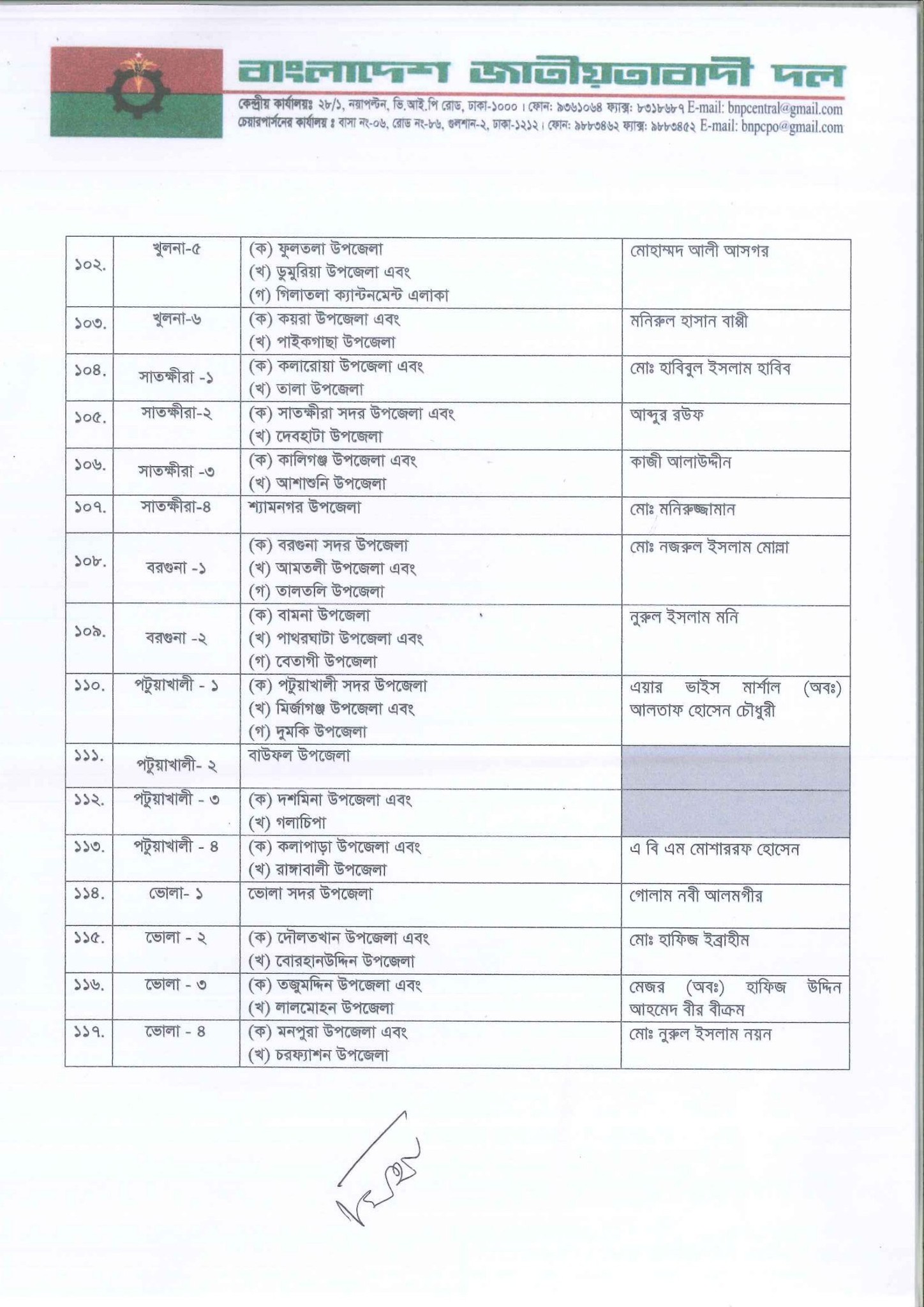 বিএনপির প্রার্থীদের পূর্ণ তালিকা নিচে প্রকাশ করা হলো -