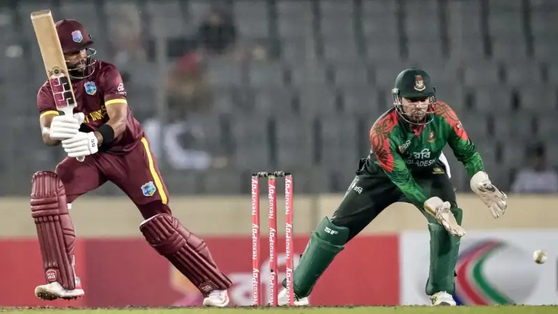 এর আগে বাংলাদেশের হয়ে সুপার ওভারে বোলিং করেন মুস্তাফিজ। তার প্রথম বলে এক রান নেন হোপ। দ্বিতীয় বলে ক্যাচ দেন রাদারফোর্ড। প্রথম ৫ বলে ৬ রান খরচ করা ফিজ শেষ বলে বাউন্ডারি হজম করেন। ফলে স্কোরবোর্ডে ১০ রান তুলে উইন্ডিজ।